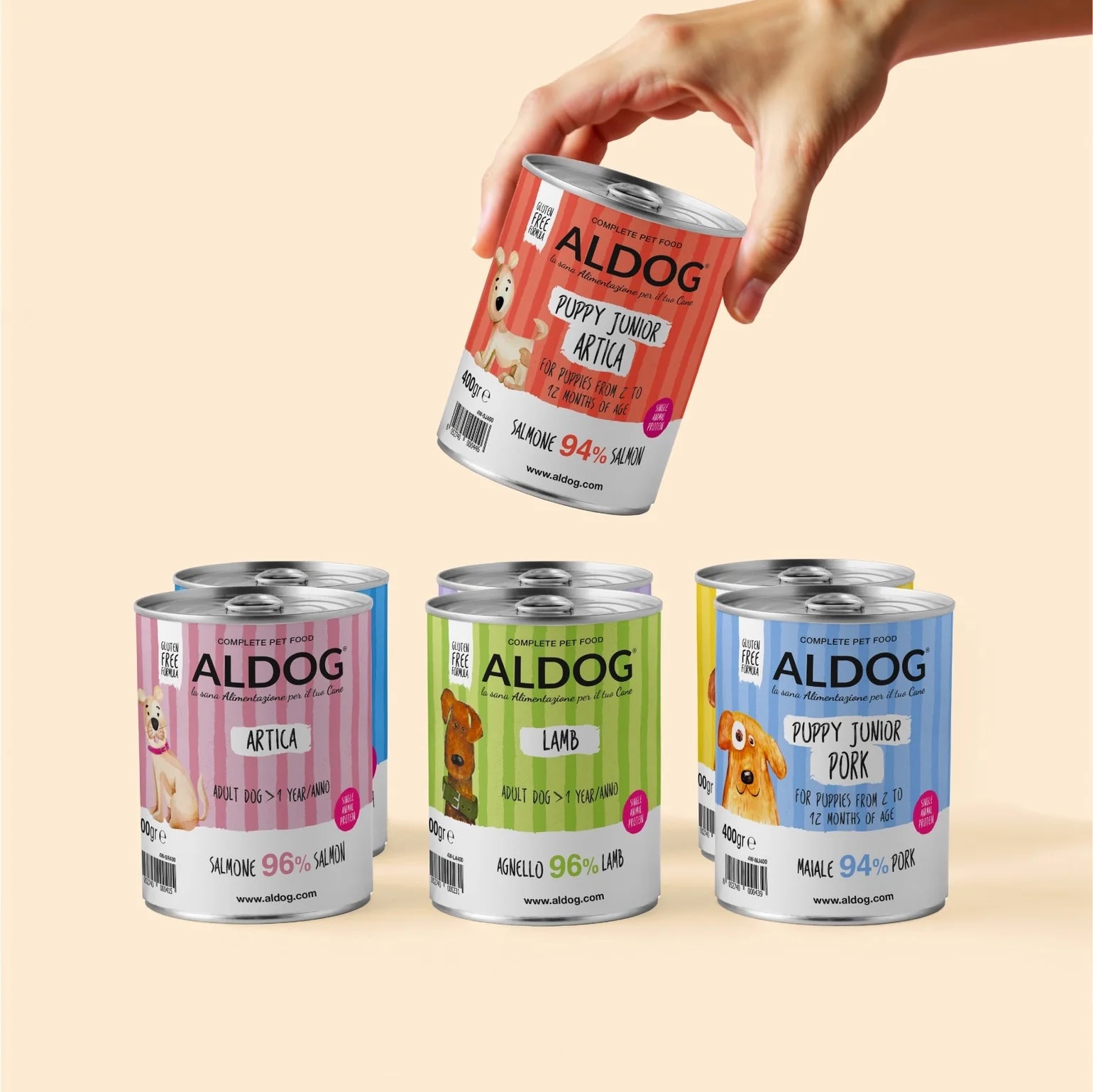 A aby uspokojila všechny potřeby, řada Patè ALDOG nabízí výběr určený pro štěňata a širší sortiment pro dospělé psy.